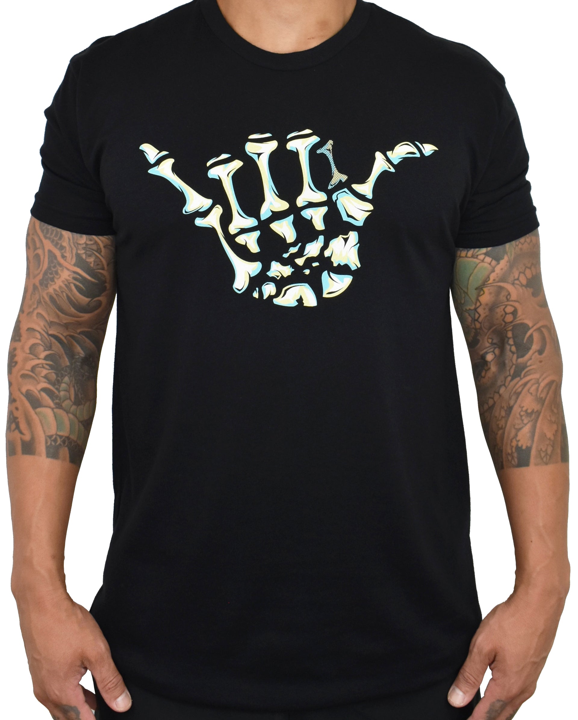 Bones Shaka logo on Black color Tee