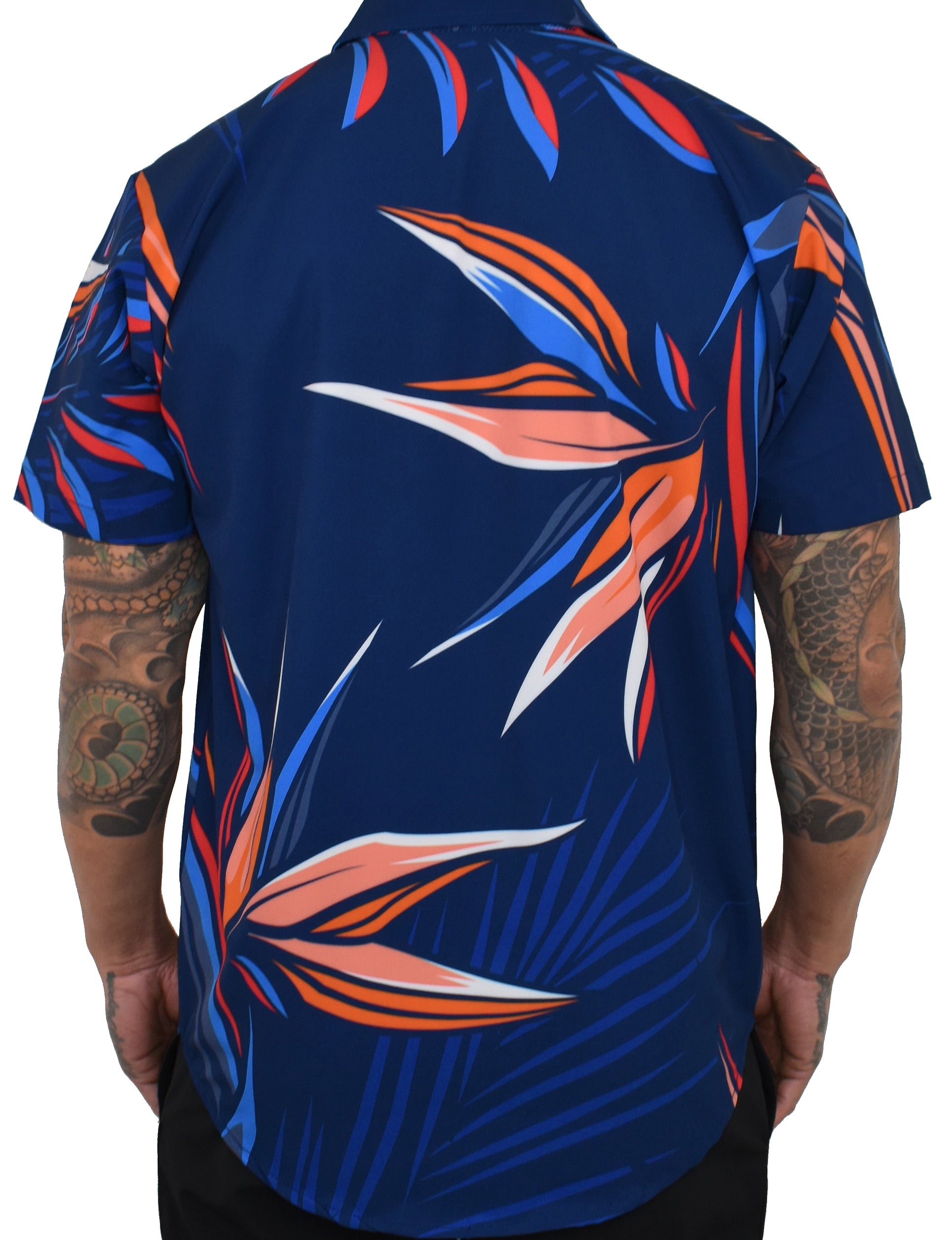 Sublimated print on Ultra Fabric with Wood Buttons. 90% polyester, 10% spandex. Designed in California while dreaming of Hawai'i. Our items are produced in limited quantities. Once a product completes its run, it is no longer printed again. Sizes S-5XL. Size chart 1
