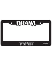Raised 'Ohana Over Everything® text and Project X logo on Plastic License Plate Frame