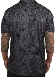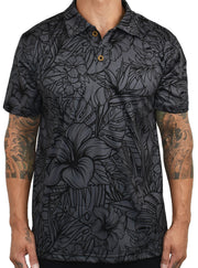 Charcoal Hibiscus print on Performance Polo